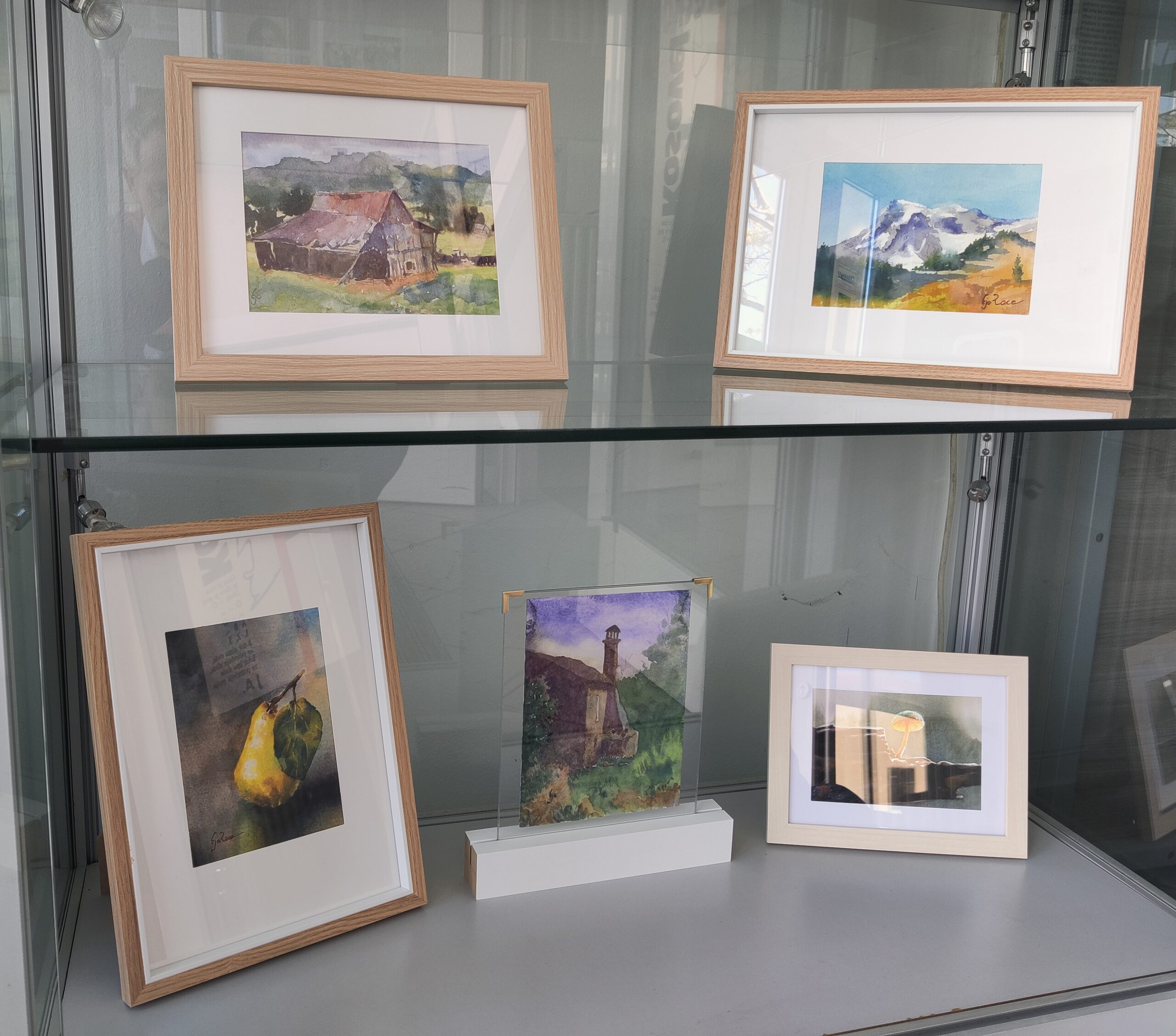Slike v tehnikah akvarela, gvaša in oljnega pastela.